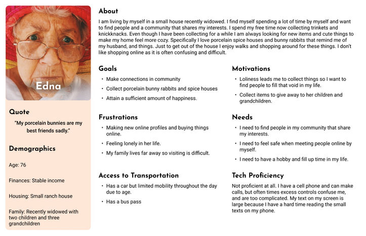 Persona Tertiary: I get a thrill out of finding a bargain and shopping - Edna